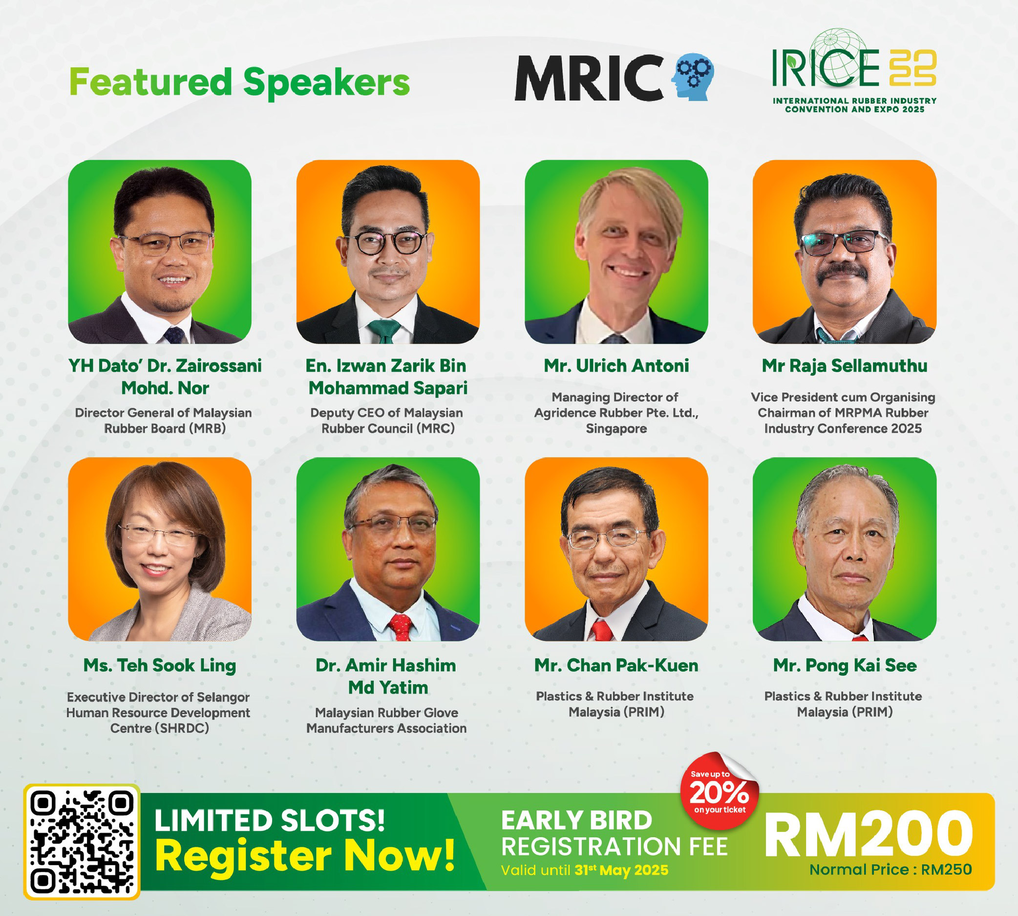 In conjunction with the International Rubber Industry Convention & Expo (IRICE) 2025, MRC is organizing an e-Global Sourcing Mission (e-GSM) โ a virtual business matching programme that connects international buyers with trusted Malaysian manufacturers of dry rubber products.